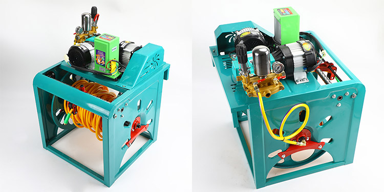 TЊегова аутоматска прскала пестицида покреће се независно од стране два мотора. Један мотор је одговоран за распршивање високог притиска, док се други мотор користи за аутоматску котрљање цеви. Два мотора могу да раде синхроно и такође подржавају операције даљинског управљања у распону од 500 метара. Може да подеси величину спреја и брзина одмотавања цеви. Аутоматски систем за котрљање цеви користи пренос преноса и ланца да би се постигао уређење уреда и продужењу цеви, смањујући ручну интервенцију и снижавање трошкова рада.